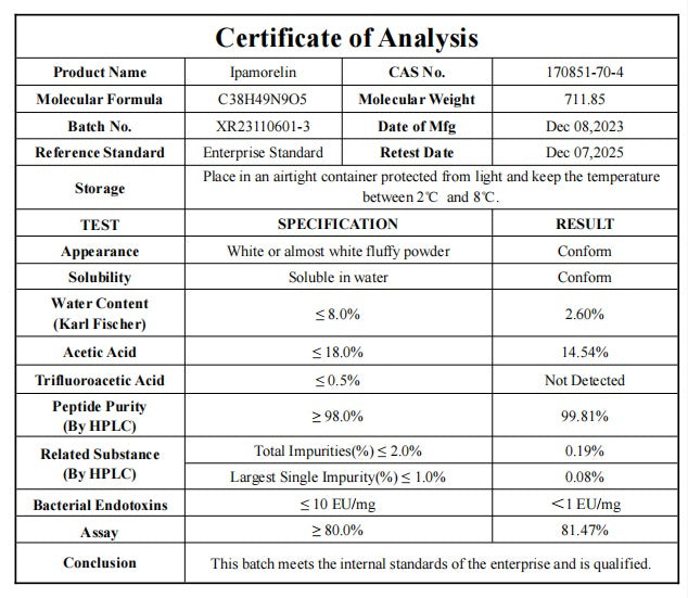 Vital Peptides’ Ipamorelin is a high-purity, synthetic research peptide supplied as a lyophilized powder. With a molecular weight of 711.9 g/mol, this compound is designed for advanced laboratory studies and experimental use only.